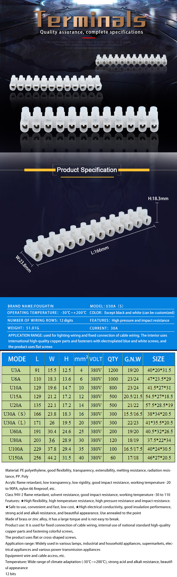Terminal Blocks Brass Screw /Copper Terminal U30AS