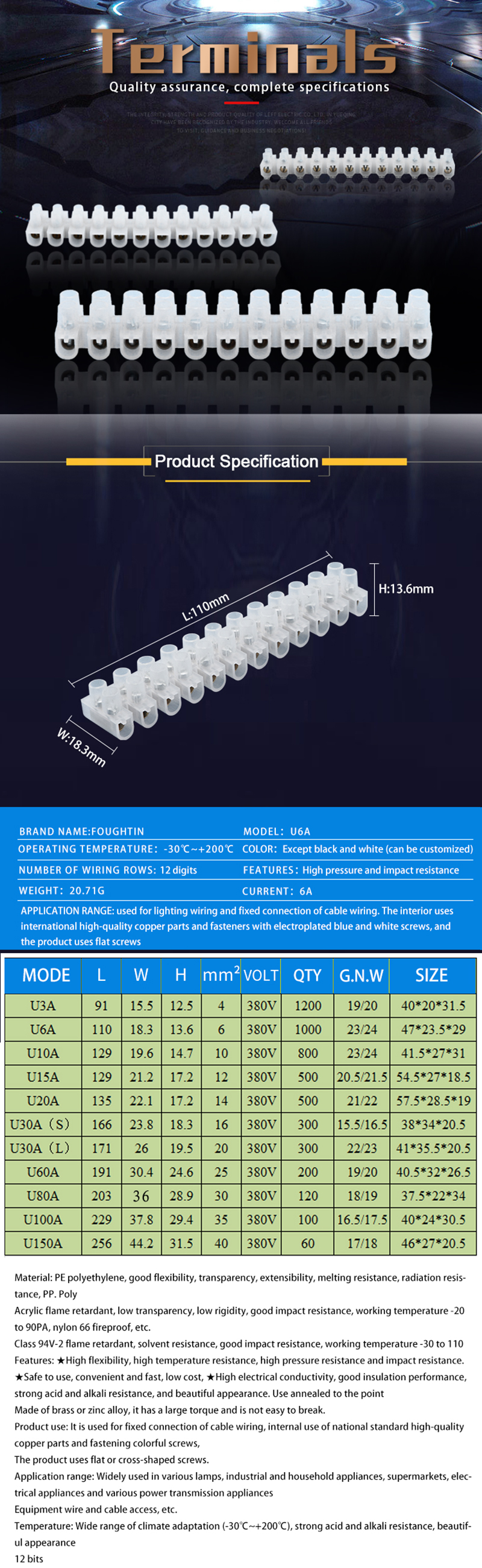 Terminal Blocks Brass Screw /Copper Terminal U6A