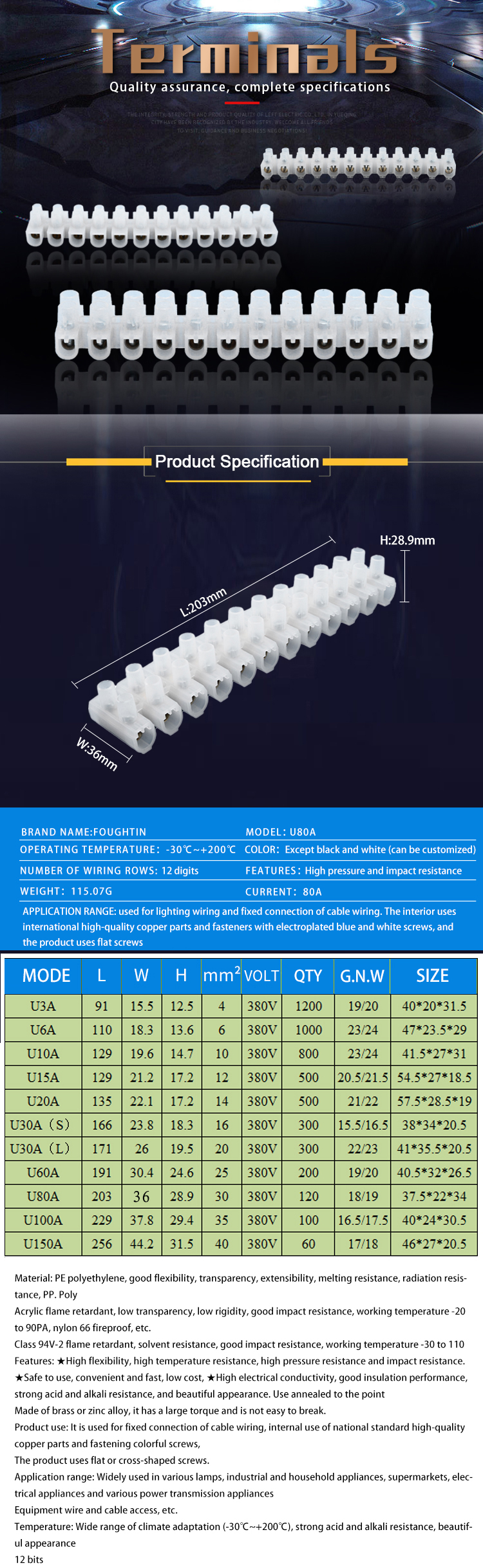 Terminal Blocks Brass Screw /Copper Terminal U80A