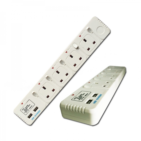 4 gang uk socket with individual switch and neon with 2 usb port extension socket